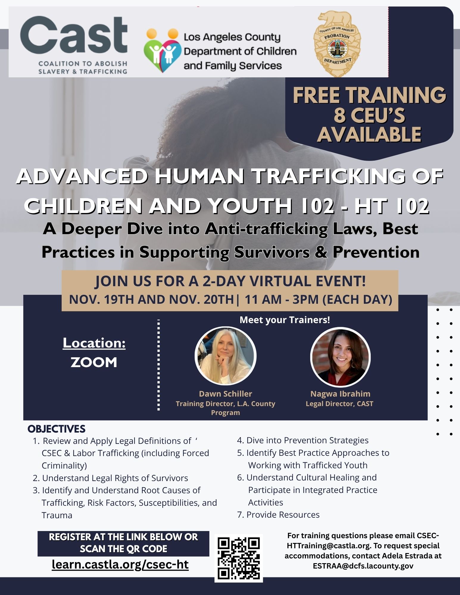 Advanced Human Trafficking of Children and Youth 102 (ZOOM – Must attend both days to receive credit)