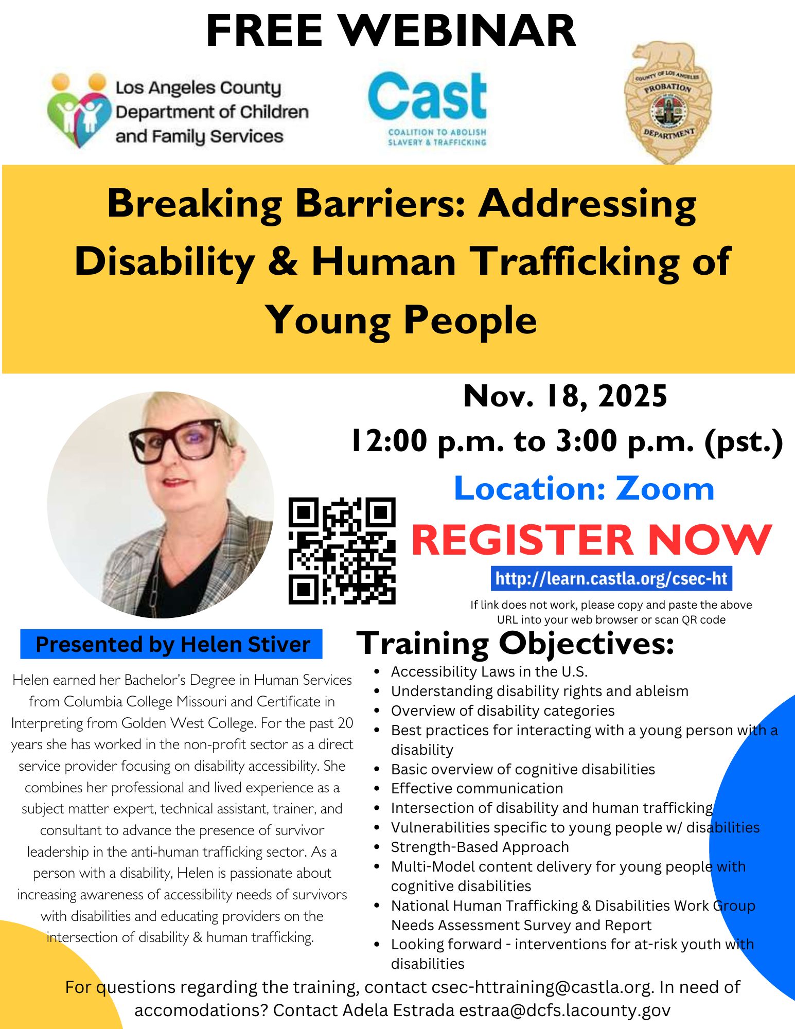 Breaking Barriers: Addressing Disability and Human Trafficking of Young People (ZOOM)